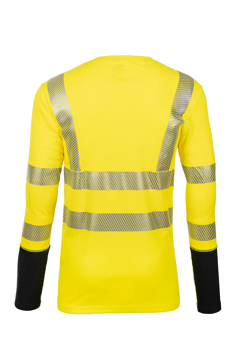 The Pro Dry® Hi-Vis Yellow Long Sleeve flame-resistant shirt offers unmatched comfort and performance, exceeding the challenges of moisture management on the job. High-density seams and a tagless neckline provide a true comfort experience, while increased fabric durability and improved stretch ensure longer-lasting wear and flexibility.
